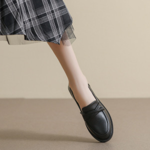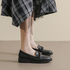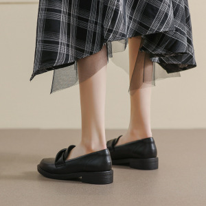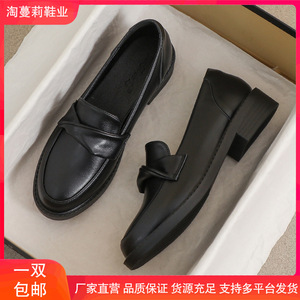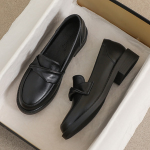 本革レディースシューズ 2025年春 イギリス風 ブラック ドビー フラットシューズ ソフトソール ミドルヒール ローファー 快適 ビジネスシューズ