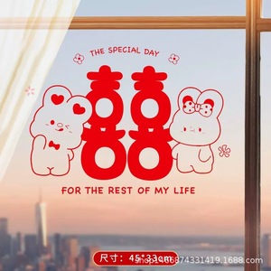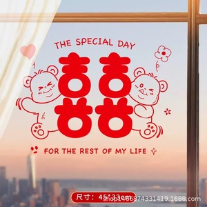 結婚式の静電ステッカー、喜字ステッカー、窓用、結婚式の部屋の装飾、結婚式、結婚祝い、ガラスの二重喜字窓飾りステッカー、赤い装飾