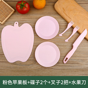 ピンクのりんごの板 + 皿2つ + フォーク2つ + フルーツナイフ-122mm-15.1cm-60 ° 以上