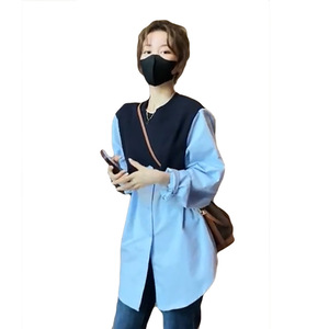 授乳上着の春の韓国版のシャツはゆったりしていて、ファッション的に色にぶつかっています。