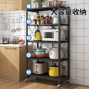 キッチンラック折りたたみ式床置き多層電子レンジ収納ラック家庭用多機能取付不要収納ラック