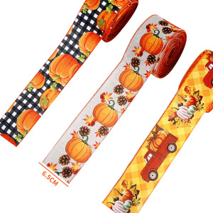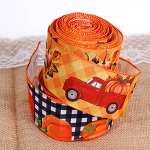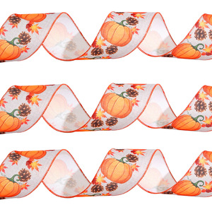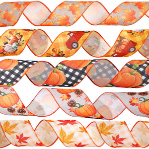 国境を越えた新型ハロウィーン模造麻リボン6.5cm針金拷問辺祝日装飾リボンカボチャカエデ