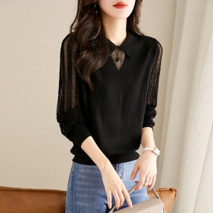 長袖tシャツ婦人服2023新作春夏洋気綺麗レース上着インナーシャツ