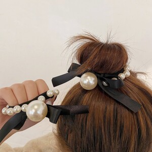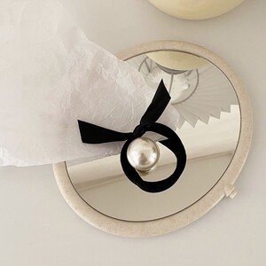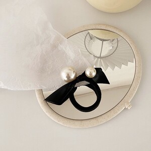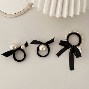 日韓のファッションの小さい香風の真珠の蝶結びのシュシュのシンプルな百合のゴムのタオルの輪の女性の高級感の髪飾り