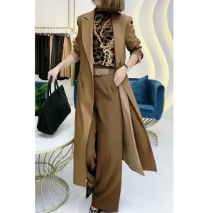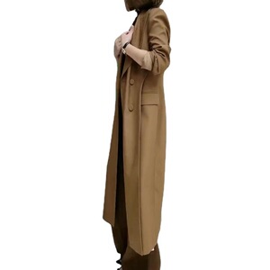 9817 Damei Yiyuan 2025 秋の新作コート、ファッショナブルな長袖カーキ色のロングウインドブレーカー、女性用、スリムでトレンディー