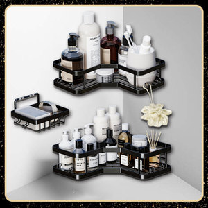 浴室収納ラック、トイレ壁掛け、穴あけ不要、シャワールーム壁掛け収納、シャワージェル三角ラック、浴室収納