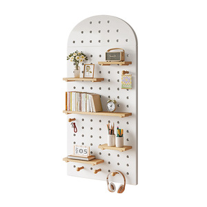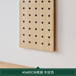 ドアの入り口の玄関の壁面の実木の穴の板の物置棚の壁掛けの壁の壁の木製の掛け板の収納壁