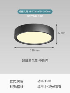 30w ブラックシェル [ニュートラルライト] 直径16cm、高さ3.2cm