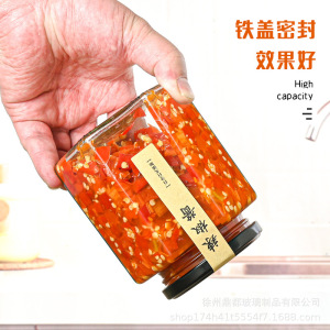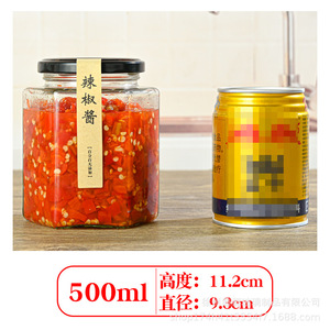 スポット卸売り蜂蜜ガラス瓶唐辛子ジャムガラス瓶密封貯蔵物六稜食品ガラス缶瓶