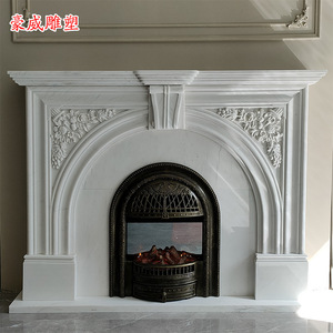 現物大理石フランス漢白玉暖炉アーチ型レリーフヨーロッパ式暖炉棚装飾棚置物石材暖炉
