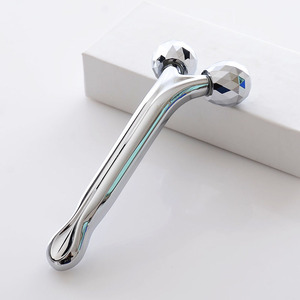 ゴールドヘッドとシルバーハンドルの小さなロングローラー顔痩せマッサージャー