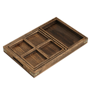 日本式家庭用実木茶盤レトロな桐の木茶トレー七点セット