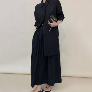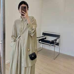 2024 春夏ニッチシャツツーピース通気性プリーツテクスチャルーズ長袖シャツとスカートスーツ