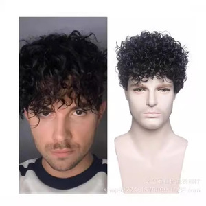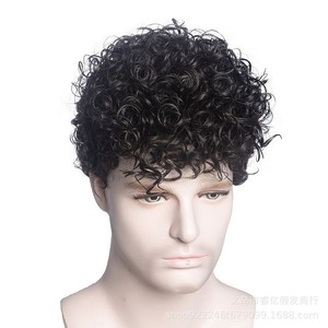かつらファッション男性かつら欧米のハンサムな男性かつらがふわふわしていてリアルな短いカール化繊かつらカバー
