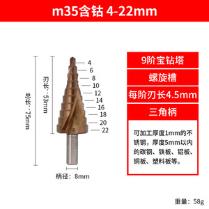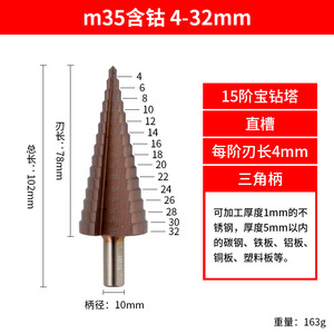 宝塔ドリルm35コバルトを含む階段穴拡器ステンレス金属穴開け器スパイラルテーパー穴開けドリル