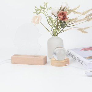 实木发光底座亚克力小夜灯发光木质底座水晶球发光灯座LED小夜灯