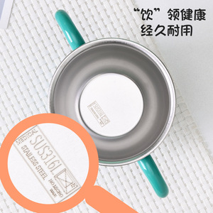 子供316ステンレスのコップミルクカップ赤ちゃんの目盛り付きハンドル付きストローカップ