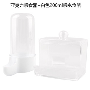 角型アクリル給餌器 + 白色200ml給水器