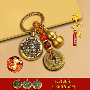 真鍮干支守護聖人中国キーホルダーペンダントペンダント中空ひょうたん小さなギフトメーカー卸売