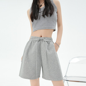 2025年夏用 レディース スポーツショーツ 薄手 ゆったり カジュアル ワイドレッグパンツ ストレート 五分丈パンツ ハイウエスト 着痩せ効果