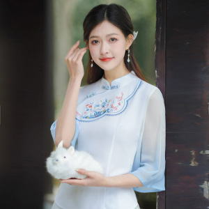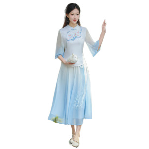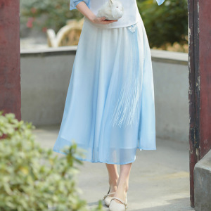 中国風刺繍立襟七分袖上着シフォン大振り子スカート