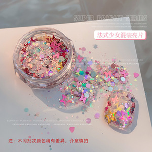 ネイルスパンコール卸売りネットレッド爆閃超薄幻彩六角不規則円形五角星愛爪パッチ