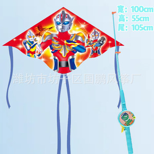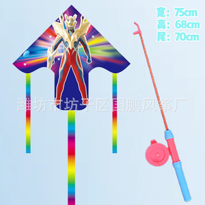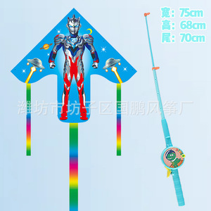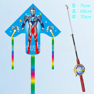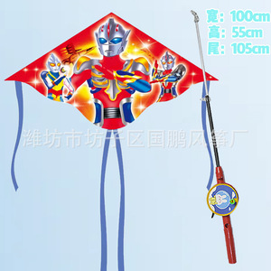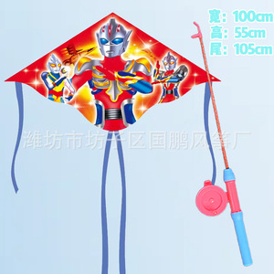 子供の釣り竿の凧の卸売りの100個の凧の露店の卸売り公園は釣り竿のプラスチックの凧のウルトラマンを並べます。