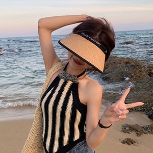 空トップuv黒ゴム日焼け止め帽子女性夏の大きなつば紫外線防止ビーチ日よけ麦わら帽子顔太陽帽子