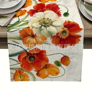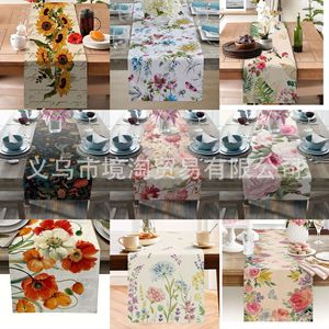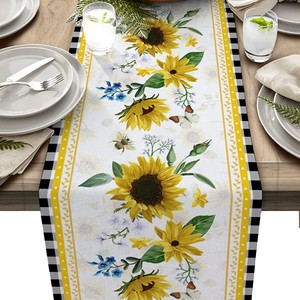 リネンのテーブルの旗の田園の花のレモンの夏の家のレストランの食卓の屋外の装飾のプリントのテーブルクロスのテーブルの旗