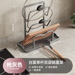 銃の灰色の鍋の蓋の棚の台の上の物置の棚の家庭の鍋のシャベルの棚の多機能は鍋の蓋のスプーンを入れて水を切って卸売りを収納します。