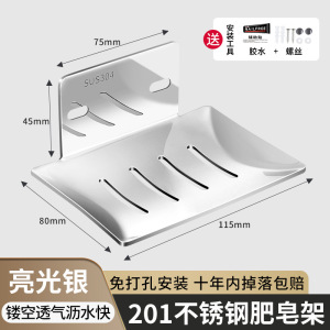 シンプルなステンレス製の石鹸置き、浴室用石鹸箱、家庭用石鹸箱、穴あけ不要の壁掛け式水切り石鹸金属製ラック
