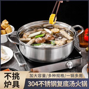 304ステンレスの厚い底の鍋のスープを厚くして、家庭用の業務用のサイドストーブのまっすぐなタイプの底のスープの鍋を詰めません。