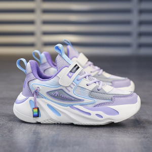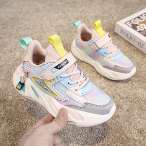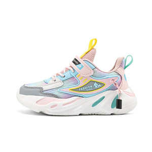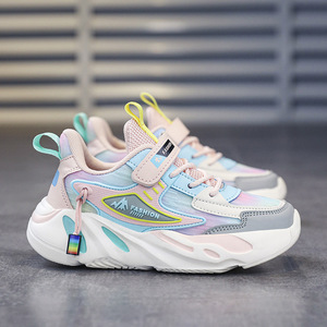 女の子用スポーツシューズ 2025年秋 通気性メッシュ 軽量 滑り止め 厚底 ランニングシューズ マジックテープ ピンク ガールズシューズ