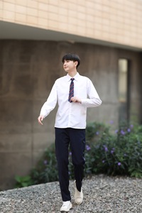 男白長袖 + 黒ズボン + ワインネクタイ