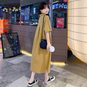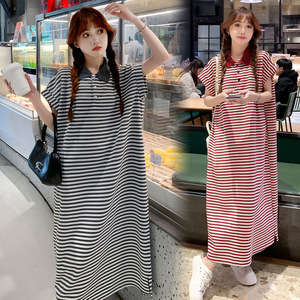 妊婦服の夏服のワンピースの長い綿のtシャツの韓国版のゆったりした妊婦のスカートの夏の膝の長いスカートの夏のスカート