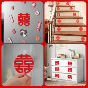 ロックの美しい家の結婚の部屋の装飾は植毛の静電の水を配置して喜字を貼り付けてガラスの扉と窓の家具の階段の双喜字を貼ります。