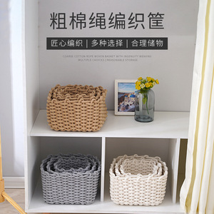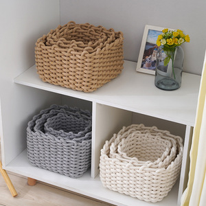折りたたみ綿ロープバスケット北欧ins綿ロープ収納バスケット三点セット収納バスケット鍵口紅アルバム収納バスケット