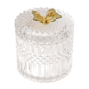 Insレトロフレンチレリーフガラス収納缶テーブル装飾装飾装飾化粧綿棒蓋付き缶収納ケース