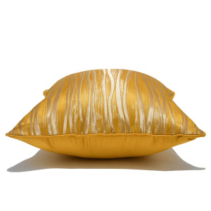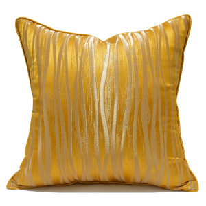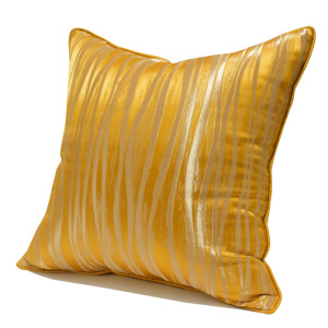 黄金色のソファーは枕を抱いて寝室のベッドの上で食事をします。