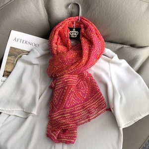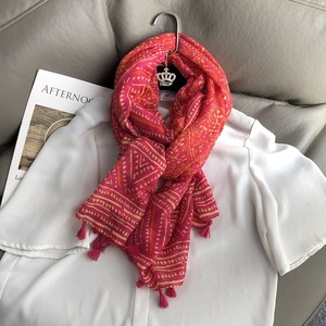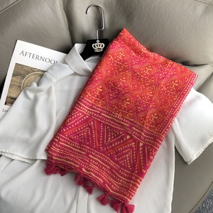 水青マフラーボヘミアン民族風旅行日焼け止めストールバリ糸綿麻手触り赤幾何学シルクタオル