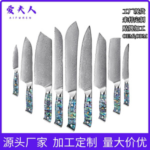 跨境现货日式VG10大马士革钢刀厨房菜刀厨师刀套装贝壳树脂柄厨刀