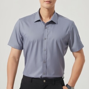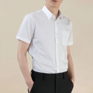 メンズ高級白シャツ、ノーアイロンシャツ、メンズ長袖防シワプロ通勤シャツ、刺繍ロゴ、ビジネスフォーマルウェア