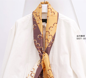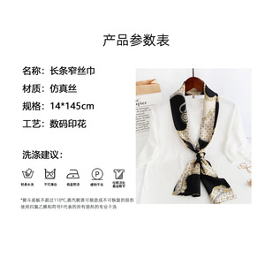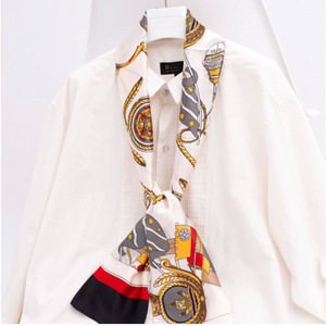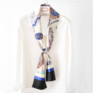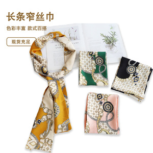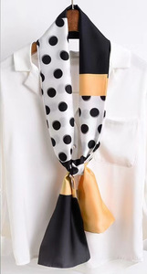 スターの同じタイプのシミュレーションのシルクのサテンの長い条の狭いシルクのタオルの色の長いタオルの波の波の点のプリントの小さいシルクのタオルのリボン
