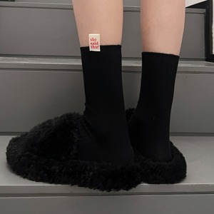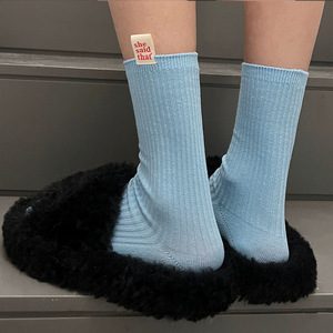 韓国潮牌sheアルファベット布標双針甘中筒靴下男女綿ins潮流小衆連名靴下