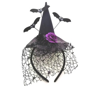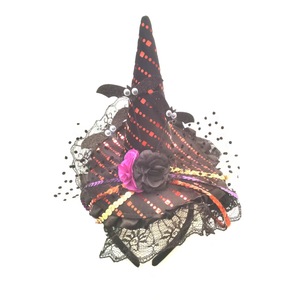 新しいハロウィーンの髪のフープの祝日のパーティーのショーの道具の帽子の髪飾りのネットのスカルの花の魔女の帽子