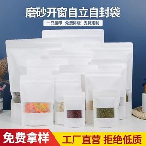 クラフト紙袋自封袋茶葉白色フロスト開窓食品自立袋乾燥茶葉密封袋