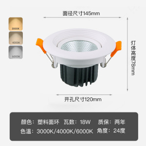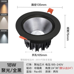 スポットライトled天井灯家庭用組み込み式洋服店穴開けダウンライト背景壁cob7 w12集光丘