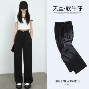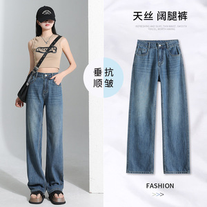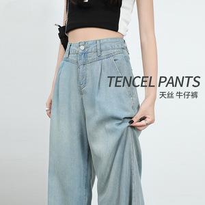 テンセルジーンズレディース2025夏薄手春秋背の高いハイウエストナローストレートアイスシルクワイドレッグパンツ