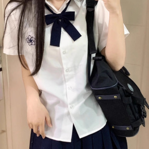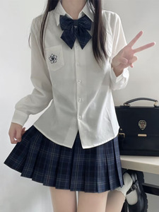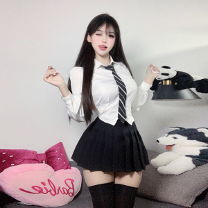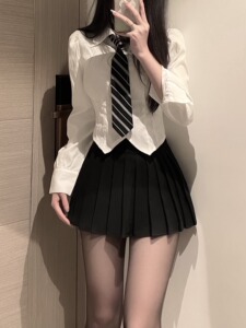 V型の白い長いシャツ + 黒い糸のスカート + 上帆学院はネクタイをしないでください。