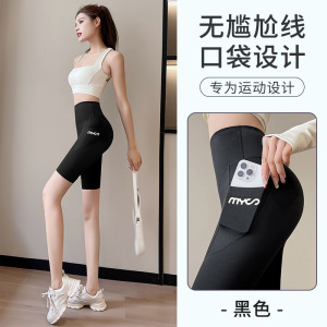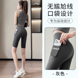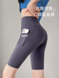 五分側ポケットサメパンツ夏の薄い女性の通気性の高い腰の運動に乗るのは気まずいことがありません。